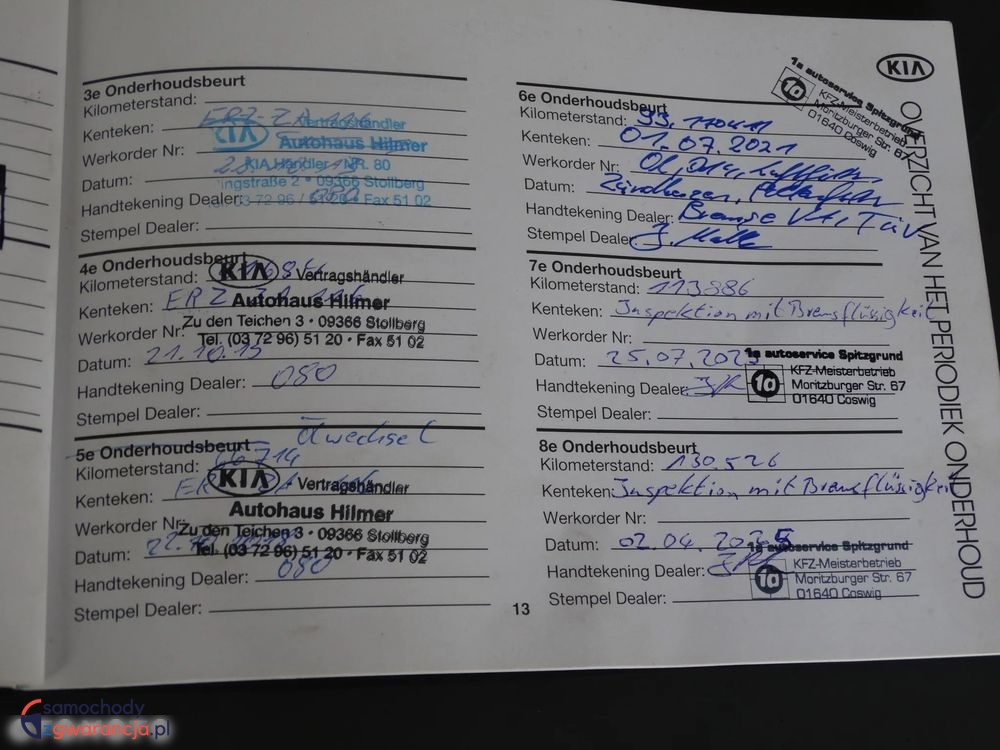 KIA POSIADA W PEŁNI UDOKUMENTOWANY PRZEBIEG – OSTATNI WPIS SERWISOWY 02.04.2025r – 130 tys.km !